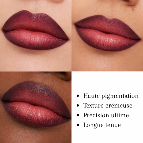 Sa mine crémeuse glisse parfaitement, permettant de redéfinir le contour des lèvres avec précision et confort.